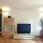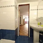 Appartement Hostdomus - La Ninfea offre à ses clients un patio, un balcon et un vestiaire, ainsi que des conforts modernes tels qu'une climatisation. Profitez du confort d'une salle de bain dans l'appartement, équipée d'un sèche-cheveux, des peignoirs de bain et des pantoufles. Vous trouverez également une toilette séparée et une douche.